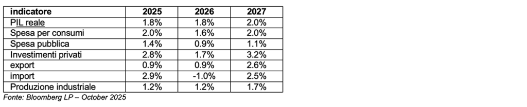 Di seguito presentiamo i forecast Bloomberg sulle principali voci di PIL: