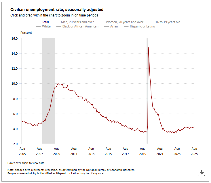Civilian unemployment rate. September 2025