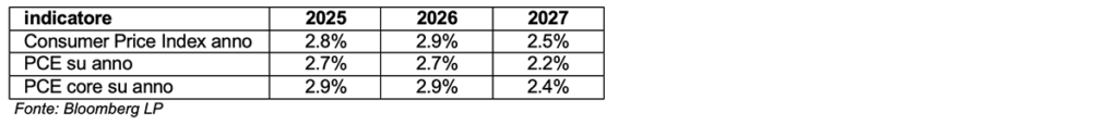 - proiezioni di inflazione e potenziali rallentamenti dovuti a dazi