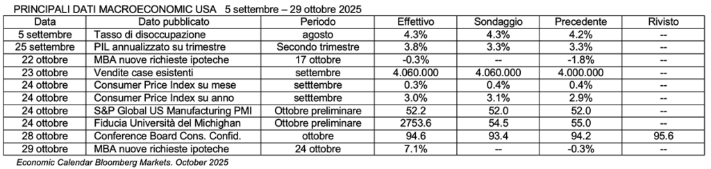 - taglio da 25 bps il 29 ottobre