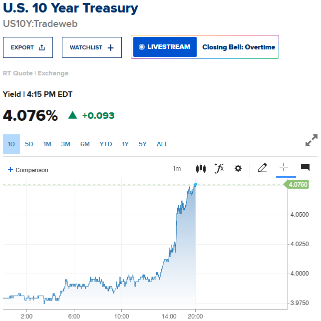 - il rendimento del Treasury decennale da 4.0023% delle 18.59 ha percorso una traiettoria ascendente poi proseguita