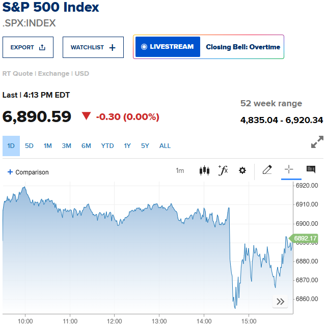 S&P 500 Index. CNBC. 29th October2025