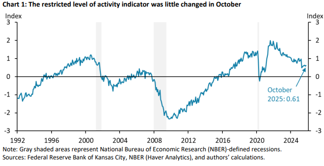 An Alternative Version of the KC Fed LMCI Suggests the Level of Activity Was Little Changed but Momentum Decelerated Sharply in October, KC Fed, 10th November 2025
