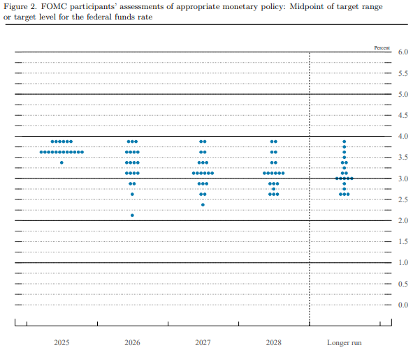 - PCE inflation ridotta nel biennio 2025-2026 (da 3.0%, 2.6% a 2.9%,2.4%) invariata nel biennio 2027-28 a 2.1% e 2.0%.