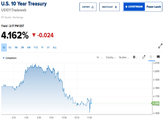 U.S. 10 Year Treasury, CNBC, 10th December 2025