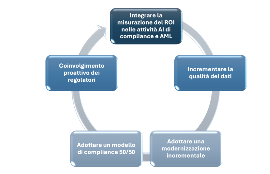 Oltre alle barriere ed alle azioni di mitigazione proposte, il report fornisce importanti azioni da realizzare per i responsabili delle funzioni di Compliance e AML al fine di un’adozione consapevole ed efficace delle tecnologie AI.