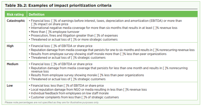 Un determinato rischio, corruzione ad esempio, che può rilevare come rischio operativo e può avere come minaccia (usuale) una interna situazione di non aderenza a norme, o situazioni di conflitto di interesse, può essere anche conseguenza di un pregiudizio ad uno degli asset ESG identificati nell’analisi di materialità come rilevanti per gli stakeholders. (es. l’organizzazione di fatto preferisce operare in mercati ad elevato rischio corruzione con prassi non strutturate e trasparenti aggravando l’illegalità nel mercato).